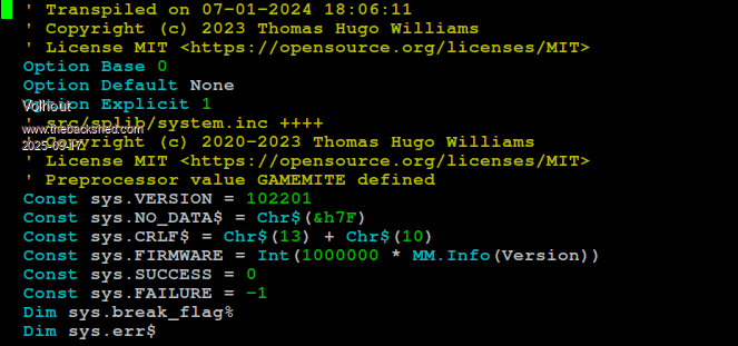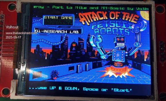 Works for me on RP2350 running Petscii. Haven't got a Game*Mite to test on - may be something to do with the OPTIONS. Please try OPTION RESET GAME*MITE if you haven't done this recently My options which should be fairly similar OPTION SYSTEM SPI GP2,GP3,GP4 OPTION FLASH SIZE 4194304 OPTION COLOURCODE ON OPTION CPUSPEED (KHz) 252000 OPTION LCDPANEL ILI9341, LANDSCAPE,GP26,GP27,GP28,GP5 OPTION SDCARD GP13 OPTION AUDIO GP6,GP7', ON PWM CHANNEL 3 OPTION MODBUFF ENABLE 192 Attached my RP2350 firmware which should have fixed the copy issue PicoMite.zip Edited 2025-09-17 19:25 by matherp |