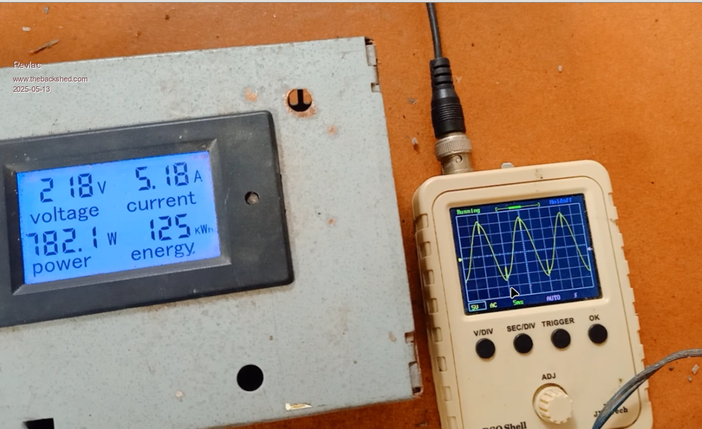 I was using the heatgun on High, through a speed controller, "AC 220V 10000W SCR Speed Control"  and the inverter output voltage dropped down to 217vac on one occasion that I noticed, Decided to have a look at the signewave with the little scope to see if it was bad or something to worry about, as it turns out, it was mostly the peak of the wave that was getting chopped with the SCR switching, when running at higher power the voltage wile rise back up again.