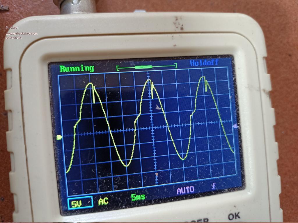 The second picture is the same controller speed setting but with the heatgun on low to show the diode just above zero crossing along with the SCR triggering.