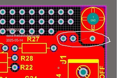 I may have previously, misinterpreted ground plain DC- with with ground, as in grounded frame of the inverter, The wire (bit hard to see in the photo) was connected to pcb ground plain using header pins in the 2 holes just to the right of J1, same as those circled in the picture a few posts back.