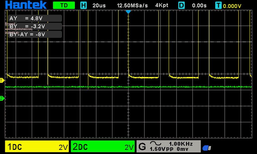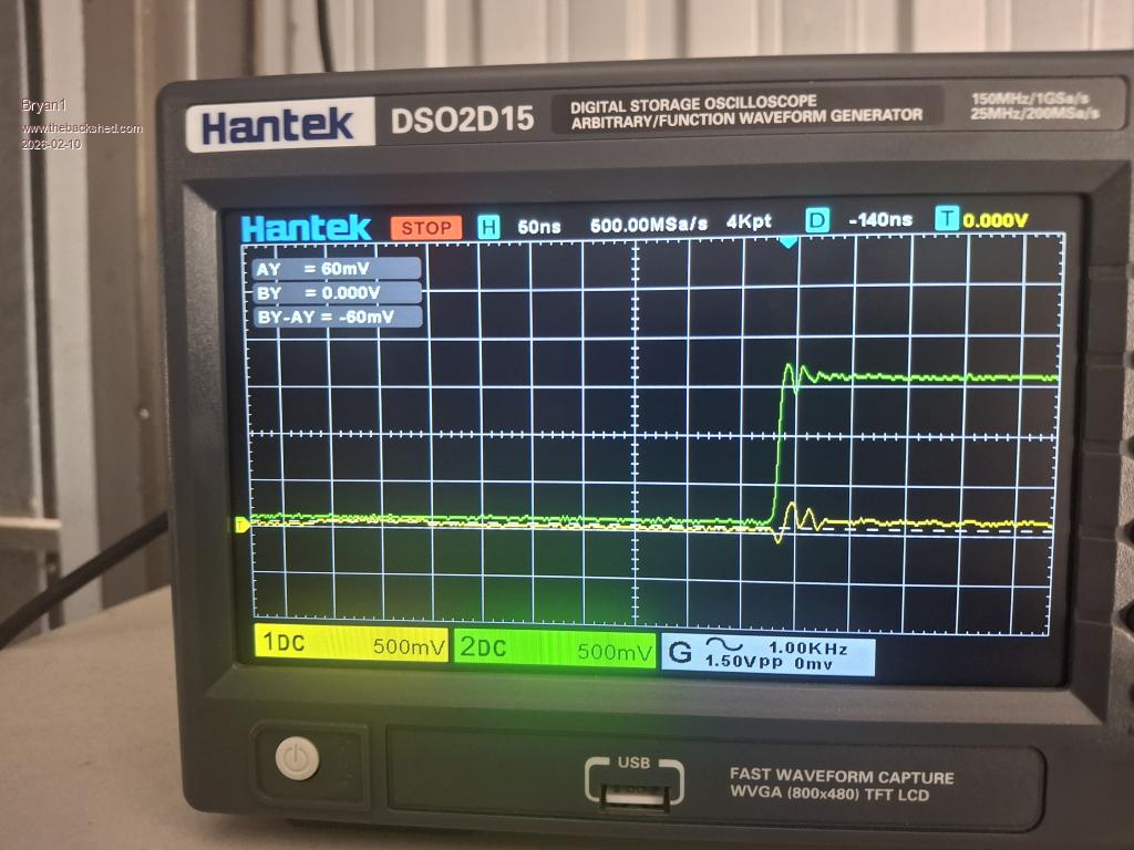 Ok setup my scope and I traced the pin position on blank pcbs. So channel 1 is VS2 high side Channel 2 is VS2 low side ![]() Now don't call me a scope expert but can take some time to get the screen set. Now I thought I was heavy handed in making the 10 pin cable as my ribbon thread is close to 20 years old and my method of using my jewelers vise to close the connection so I made another one and closed it gently and tried that but still no go. Now as I do have the scope setup any suggestions for other pins to trace would be welcome Edited 2026-02-10 12:24 by Bryan1 |