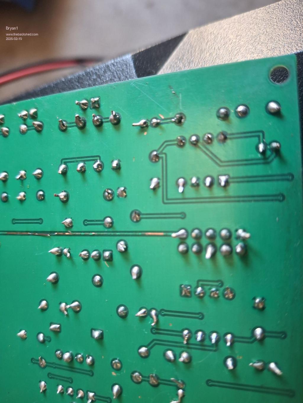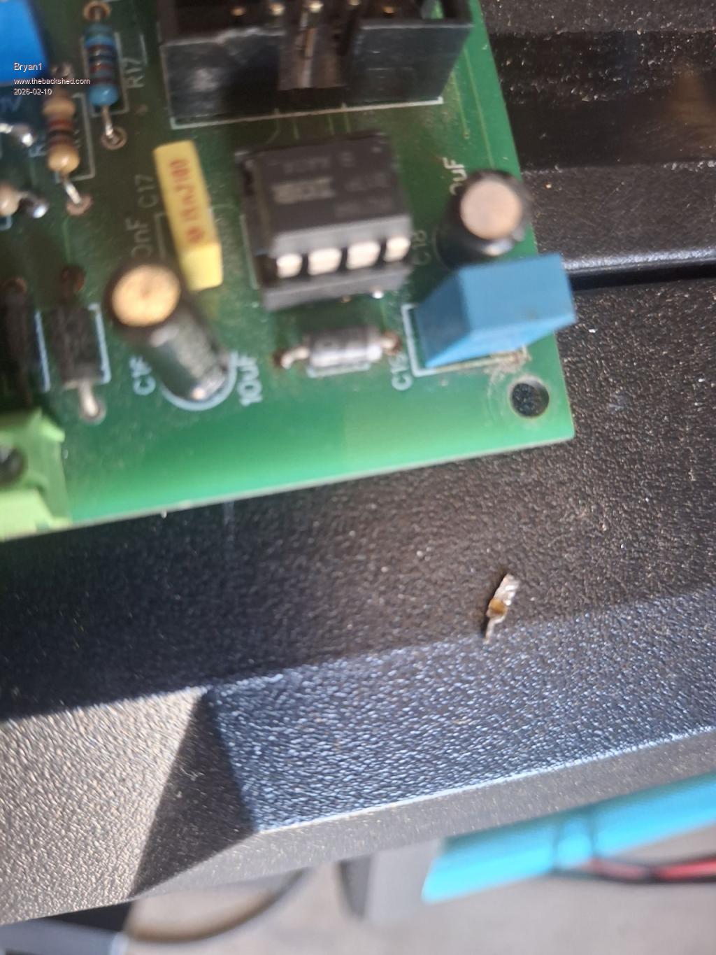 Ok got the brain board out and had a look ![]() Now the fast diode on the end of the board fourth solder joint in the top right ![]() ![]() Now doing a diode test does show it isn't blown but that solder joint does need some attention. Just had a look under the board and this was staring at me ![]() So the 50 volt track has lifted and this is the real culprit that I was looking for all along so the raised track could of been touching another component which caused the short. Edited 2026-02-10 15:40 by Bryan1 |