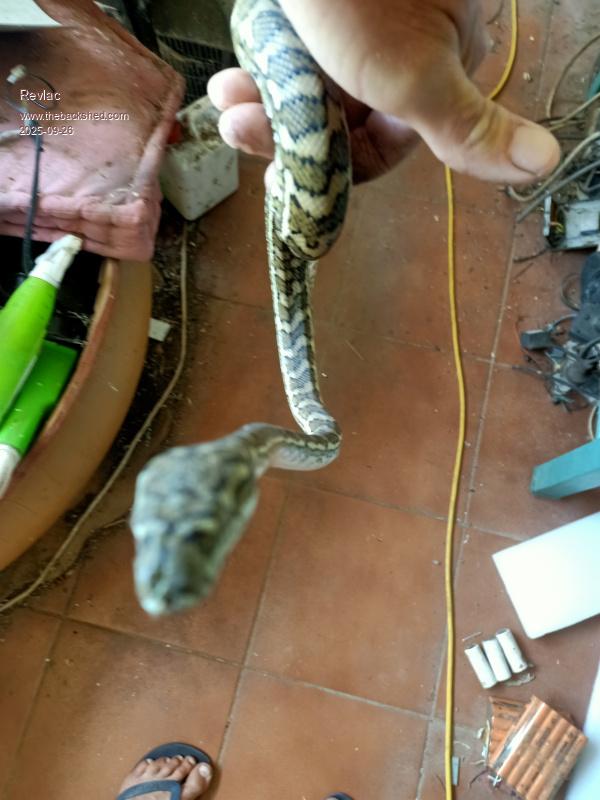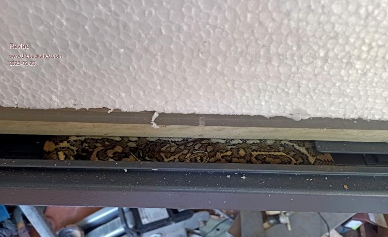 Thought I would open the door on the inverter cabinet and discovered a carpet snake at the bottom of the door against the batteries, it was a bit of a job getting it out as it didn't want leave, got it out eventually it was in good condition so put it outside, it moved close to the camera lens so its a little blurry photo, will have to seal up the cabinet a bit better I think.