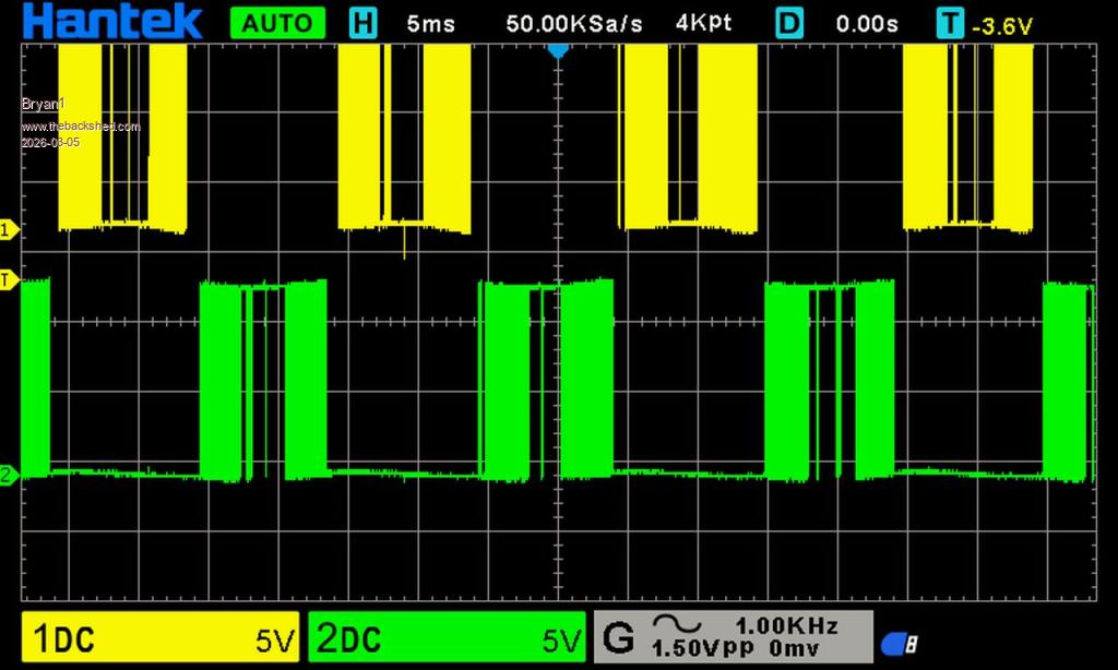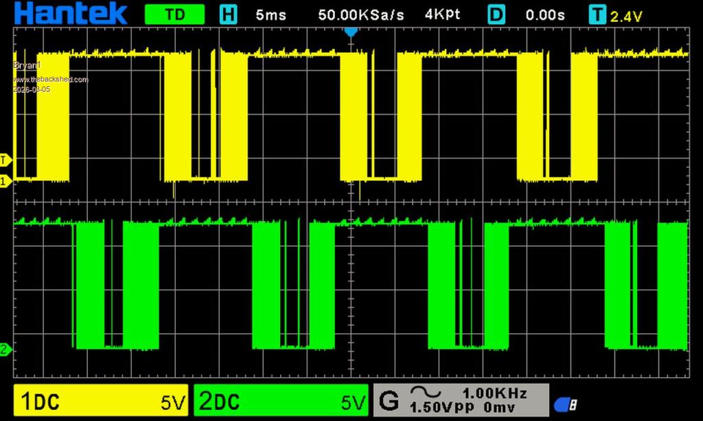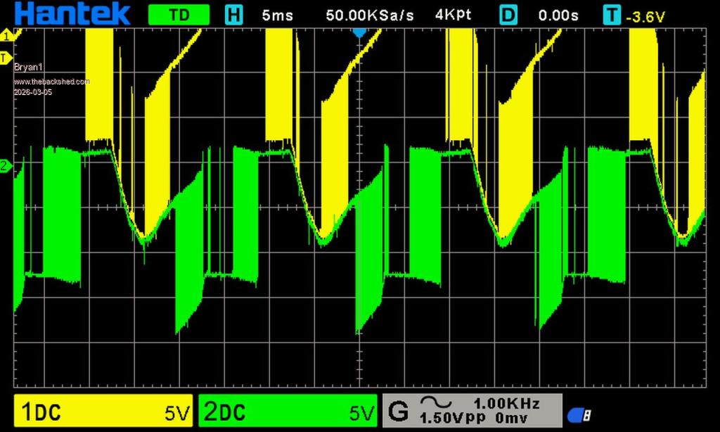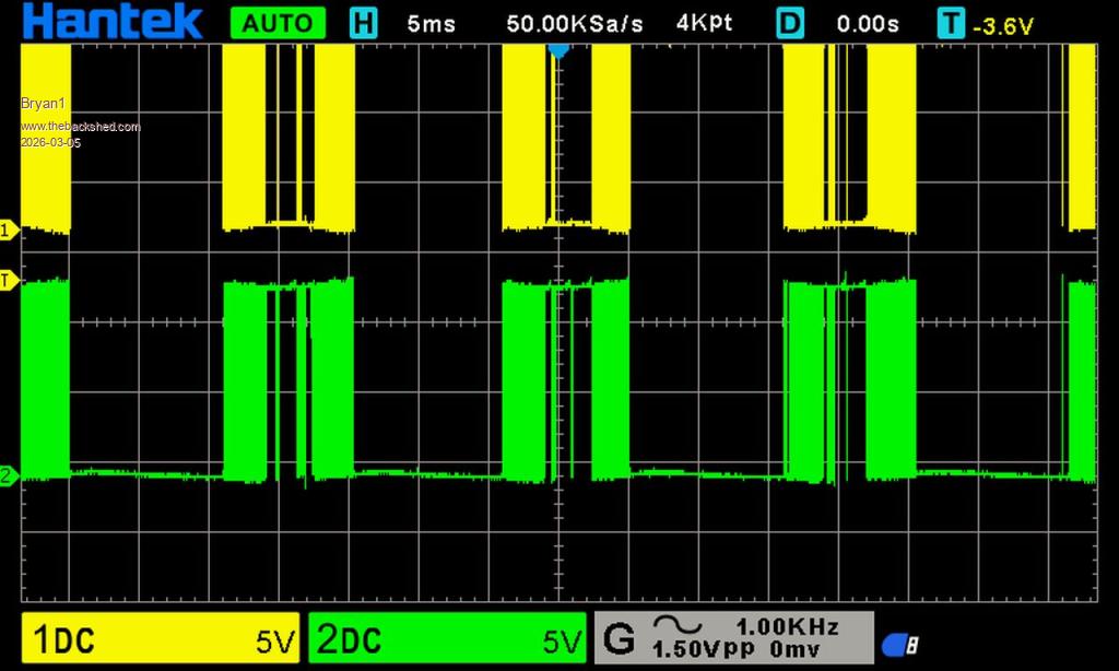 Looks like probe grounds are not connected to the controller board ground. VS1 and VS2 wires should be connected to ribbon cable wires for pin 9 and 10. Edited 2026-03-05 11:41 by tinyt |