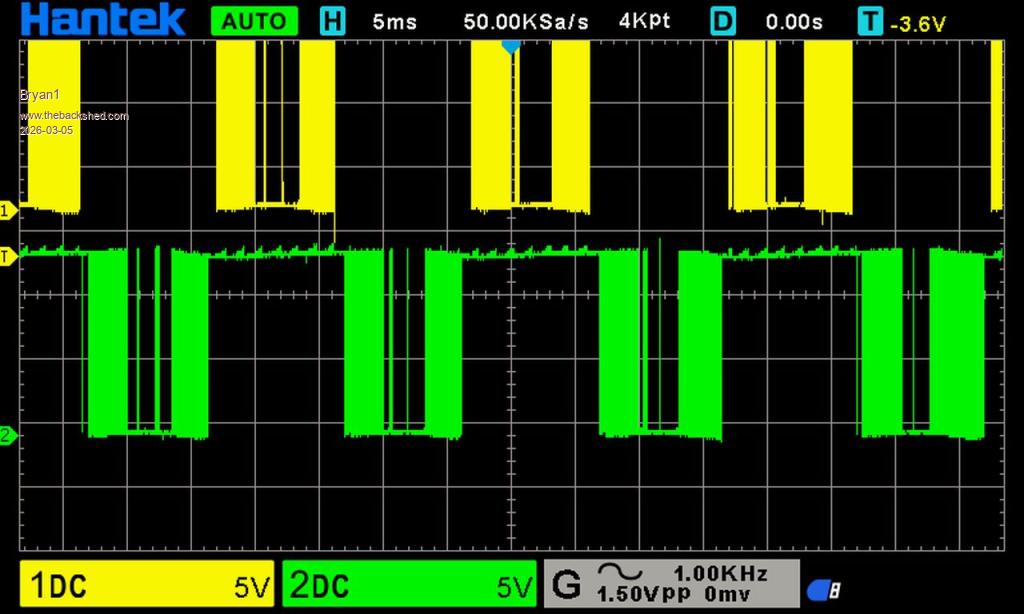 I soldered up all wires on the ribbon cable to see if the signal improved and it didn't improve at all. Anyway as I had the test setup I tested all 6 of the 2184 chips and all proved to be OK ![]() Decided to have a look at the power board and with my probes leading on the Anderson connector seeing 517.9K ohms between positive and negative. So not sure if that is a problem Edited 2026-03-05 14:56 by Bryan1 |