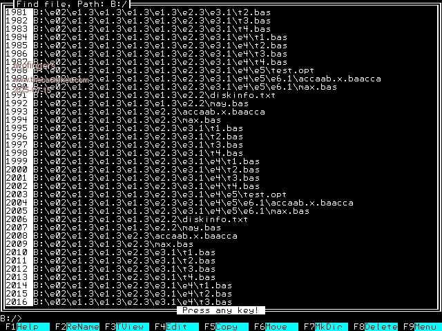 Hi Vadim, the "File Find" function has proven to be a useful idea. As I already wrote, I've dispensed with storing the results in an array and instead just output the results to the screen. This allows me to output a seemingly unlimited number of results. I'm still considering a solution to display or execute results directly in the panel, e.g., by entering the number or by copying a screen page of 36 files into an array and then selecting them with the cursor. In any case, it's progress! ![]() Regards Michael causality ≠ correlation ≠ coincidence |