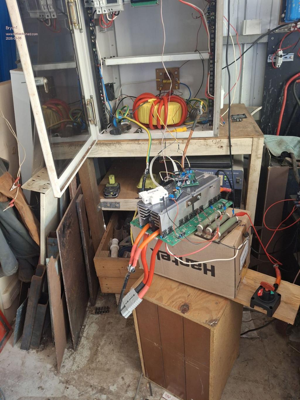 That is too low, maybe your zener diode is not 18 volts. Measure the other two pins of the TIP31. And put back wires 1 and 2. OK took the ribbon out and tested the zener diode and 17.7 volts so the zener diode is correct mate. If your battery voltage is 24v-28v, that 120 ohms 5 watts resistor should be lower in value, maybe close to 60 ohms. Edit: But if your final battery voltage is 48-56 volts, then you have to restore it to 120 ohms. That's a very good point: at Vbat= 24v and R64=120ohms you're going to have less than 50mA drive current for all four totem pole drivers. 18 or 22ohms might be better for R64. R54 (r54 on the schematic, but looks like r64 on tinyt's pcb drawing) should be lower too: maybe 1k instead of 10K to provide enough base current for tip35. But i'm thinking it may be better if the powerboard was returned to the test bench, for better access for testing; once it's outputting 13v ac between vs1 and vs2 on the bench, it may be ready to go back in the cabinet with the big torroid. Edit again: Even if the above resistors are part if the problem, there has to be another issue causing the excessive current draw. Edited 2026-03-07 20:59 by mab1 |