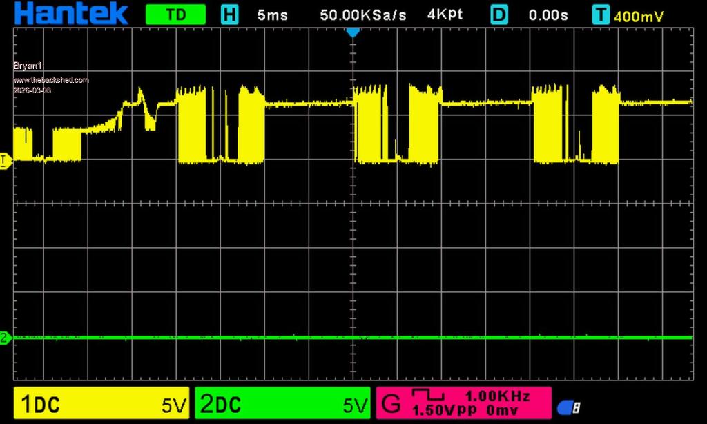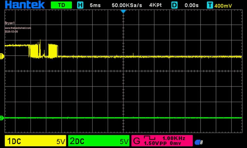 Ok got some scope pic's but it does help to read properly as I probed D1,D7,D18,D19 with gnd going to vbat ground D1 ![]() D7 ![]() D18 ![]() D19 ![]() Now I will go and 3 and 4 like I should of. |