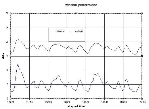 Hi readers, I have posted a graph showing real time Maximizing, and the response time that needs to be achieved, to capture the energy in a gust of wind. Between 1:08:00 and 1:13:00 on the graph, the maximizer had to follow a wind gust. This was a transient from 45W to 250W and back down again, in a 5 second window. This cannot be achieved with the MPPT example provided in the link presented in a posting above. I have scale expanded the windmill voltage and current for the same time period and graphed it. The upper graph is the voltage and the lower is the current. This power is charging my 24V battery, whenever the current is greater than zero. The battery was at 27.6V, so you can see how much of a range of voltage and current that has to be converted to a current and voltage the battery needs. The battery voltage [not shown] was being held relatively constant by the gridfeed cct that supplements the base load of my house. I have struck a few glitches in the picaxe code I am developing for the O8M chip. The code did not correctly load the windmill at power levels above 150W. I could not test this level on the laboratory power supply I use. I am working on a modifier to correct this. At the same time the code has to compensate for different battery state of charge voltages as well. I have to write 2nd and 3rd Order Poloynomial modifiers, that I will still have to test. As Oztules has said, an idea can seem to work on a simulator or test rig, but until the real world windmill experimental test is proven, you may have nothing. .. .. Gordon. become more energy aware |