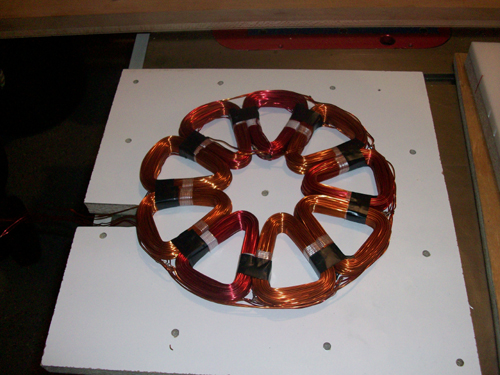 Hi gj4533, looking pretty good so far. This looks like a 12 magnets per rotor 1"x2"x0.5" block design. This has 24 cu in magnet volume. It will be interesting to compare notes, as my new AxFx unit will have the same magnet volume, but with round disks, and 8 magnets per rotor with 24 cu in total magnet volume. I will have round coils as well, and only 6 coils. The wiring tails on my unit will come out in the centre. It is probably too late for you, but I will be moulding in flexible wiring tails to my new AxFx stator. What will the magnet rotor separation end up to be? Gordon. become more energy aware |