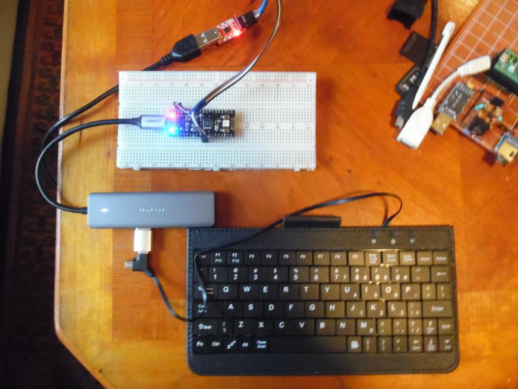 Flashed usb picomite rc3 and it works as "normal picomite" in usb mode. I use the usb to ttl as the 5v supply going into vin but that now also powers the usb keyboard. It's fine as long as you remember not to connect to pc usb and stick 5V into vin same time. so usb is possible...you shall go to the ball cinders |