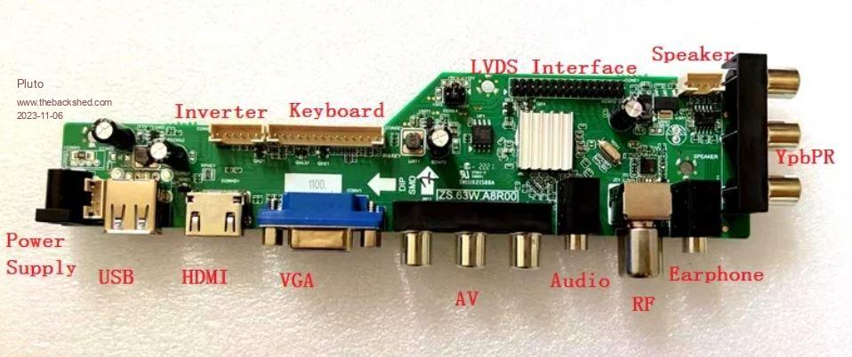 LCD Controller Board: HDMI VGA AV USB ATV DTV LCD Board Work for LVDS Interface LCD Screen Input Power Adapter:12Vdc More than 2A. Come In Standby Model When Not Input Signal Standby Model <1W HDMI Port Support Transform Audio Compatible With HDMI 1.3/1.4,HDCP 1.2 USB Support Video AV Compatible With PAL And NTSC Video Input: HDMI VGA AV USB ATV DTV ATV: 48.25MHZ-863.25MHZ PAL/ SECAM DTV: VHF (50MHz ~ 230MHz) UHF (474MHz ~ 862MHz) DVB-T DVB-T2 DVB-C Audio Input: HDMI PC-Audio Audio Output: Speaker Connector OSD: Brightness Contrast Auto Language And So On Language:English French German Spanish Italian And So On Board Size:183mm x 43mm x 17mm For PicoMiteVGA: 12V in to the LCD controller board and 5V out to Pico. VGA out from Pico and into the bord's VGA. Main use: PicoFrog and Tiles machine for the grandchildren (5a and 7a). Fred |
