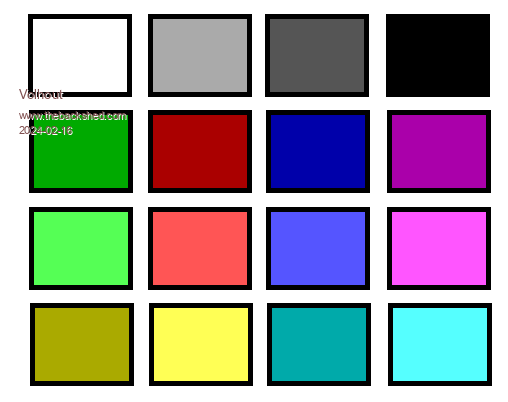 Volhout (always looking for "grey / gray" tones to better mimick real life/Windows95) Yes, as it turns out, the gray color of the ZX-Spectrum palette is the only thing missing from this VGA121 color scheme from PicoMiteVGA Best regards, Java |