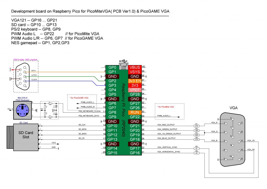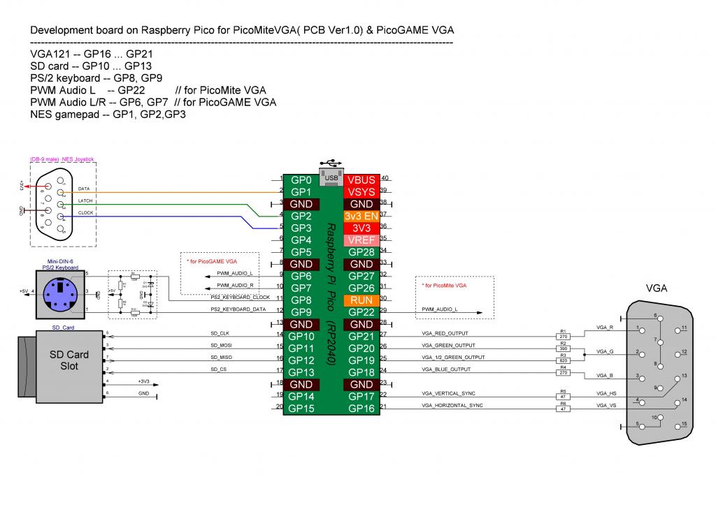 I'll have another look and let you know if I get it working. Thanks Javavi and Martin for your help. Dave. Hi Dave I hope it is less effort for Javavi to adapt the source code to the given conditions than to have to re-solder the configuration (which works for PicoMITEVGA). Also I get no real response from the PS2 Keyboard on the ZX Spectrum- or the Gameboy Emu 'no comment |