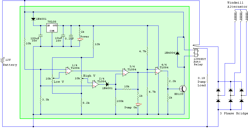 Sorry about that, for the schematic for the controller based on the TL084 ( http://www.thebackshed.com/Windmill/articles/TL084-Controlle r.asp ) I would need to change the relay and use a larger resistor value at R1 and change the 7808 to something that could handle 48V?