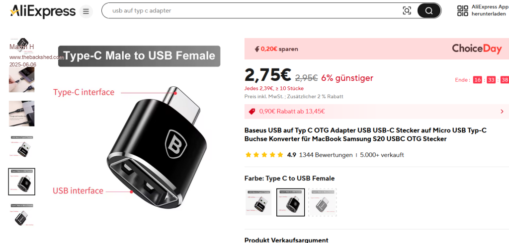 I Used this USB  A <-> C adapter, that was offered as OTG adapter
