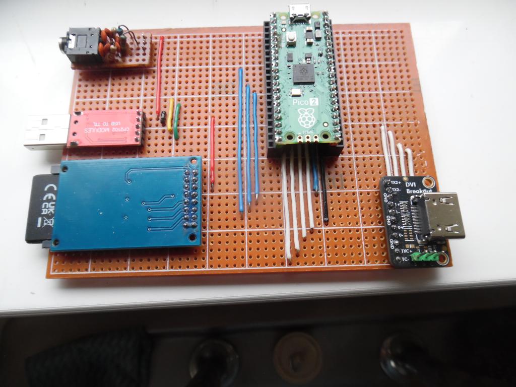 You may not be using them but it will show if the chip is getting power and if its regulator is working (in which case it's unlikely to be faulty as it's on the same bit of silicon). The 3V3 output on these is pretty limited. You can't really do a lot with it. I recognised the Adafruit board. :) For VGA you connect 6 wires plus GND. For DVI/HDMI you connect 8 wires plus GND and 5V. It's hardly a big step. :) Neither connector is vero friendly. Incidentally, the fixing centres of the Adafruit board are the same as a D9 socket (or VGA). I did a design where the video socket is mounted upside-down on a little carrier board. That plugs into a row of male headers that go to the HSTX pins. The VGA and the HDMI both have their own resistors on board, so you can just swap the video module, change the firmware and you have a different machine! Mick Zilog Inside! nascom.info for Nascom & Gemini Preliminary MMBasic docs & my PCB designs |