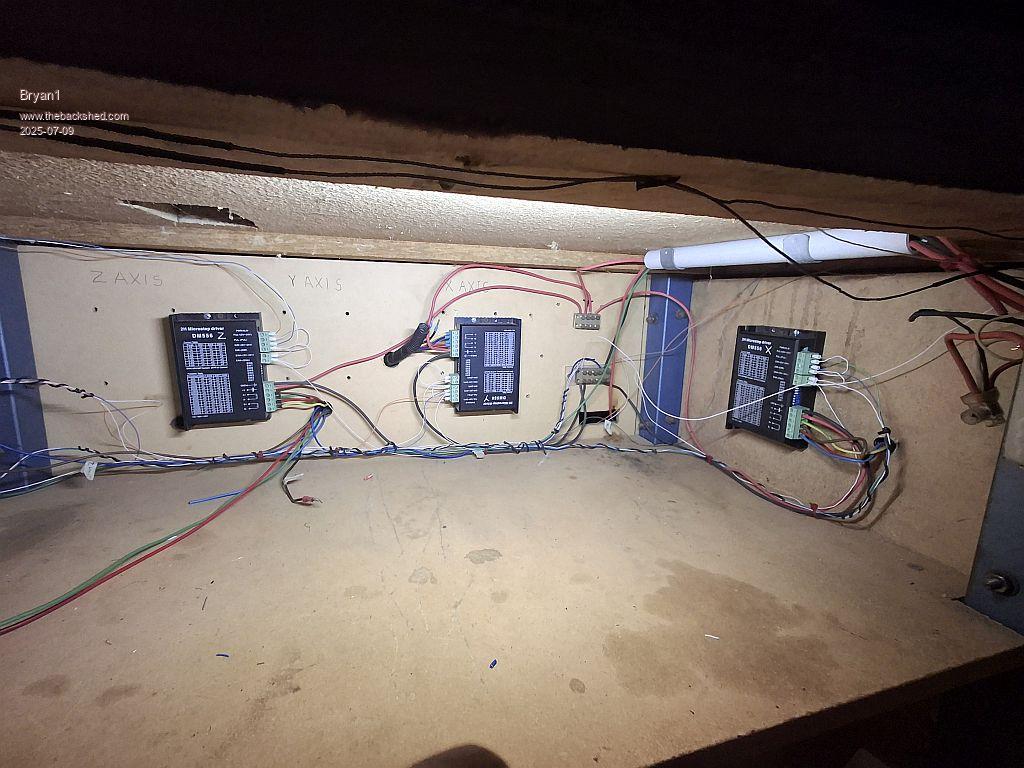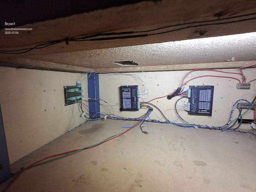 That wood bench has been on there since day 1 of my CNC mate Now where the X-axis 556 is I did put in a new side for it. As it was dark in the there I just set up a 3 section LED strip which did give plenty of light but also got nice and warm too so once everything is up and working that light won't be needed. I did stick it on using double sided tape and it did fall down a couple of times that when I noticed the warmth. Now the main table is some high voltage switch board stuff that is easily drilled and tapped and being 20mm thick it doesn't bow at all. So if I do have time tomorrow I will be testing each axis and putting a dial indicator on to check travel down to 0.001" Then the huge learning curve can start on the coding and now the V6 manual is out now may just use that $12 colour laser printer to print a copy ![]() If those DM556's do get warm in use I have a heap of heat sinks so they be remounted on them. Now once the CNC is all working I will be moving it out of my shed and down to the area I have in the house shed and it is setup to be be removed from the frame it's currently on. Phenix the CNC has 100x10mm flat bar at each end with that 20 mm board screwed on each end so when I do want to set it up in it's final destination I will more than likely fabricate up a steel frame for it. But between now and then is going to be awhile as I can't see the finish line from here at the present moment. Edited 2025-07-09 19:19 by Bryan1 |