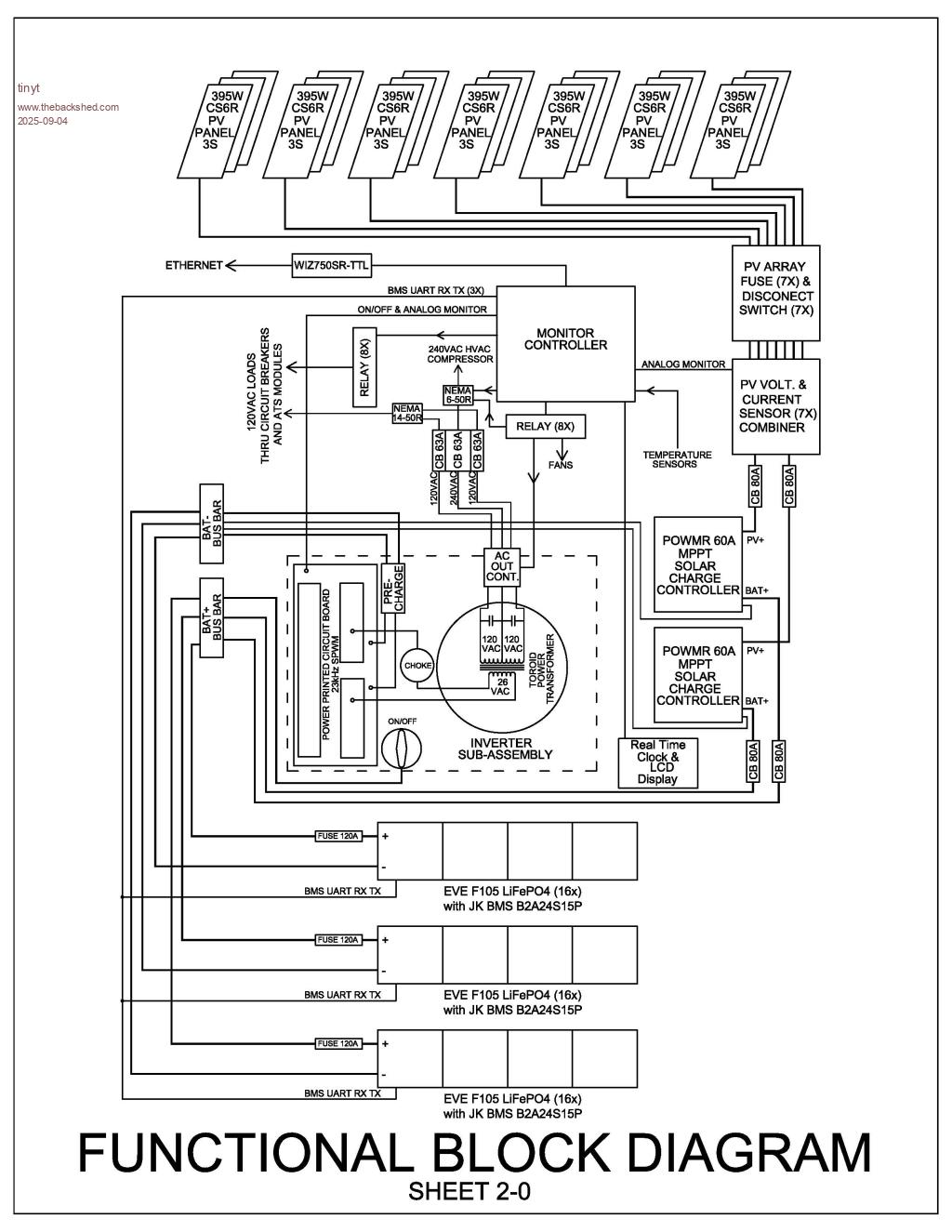 Plus a voltage controlled relay that switches the GTI inverters off when the batteries are charged.