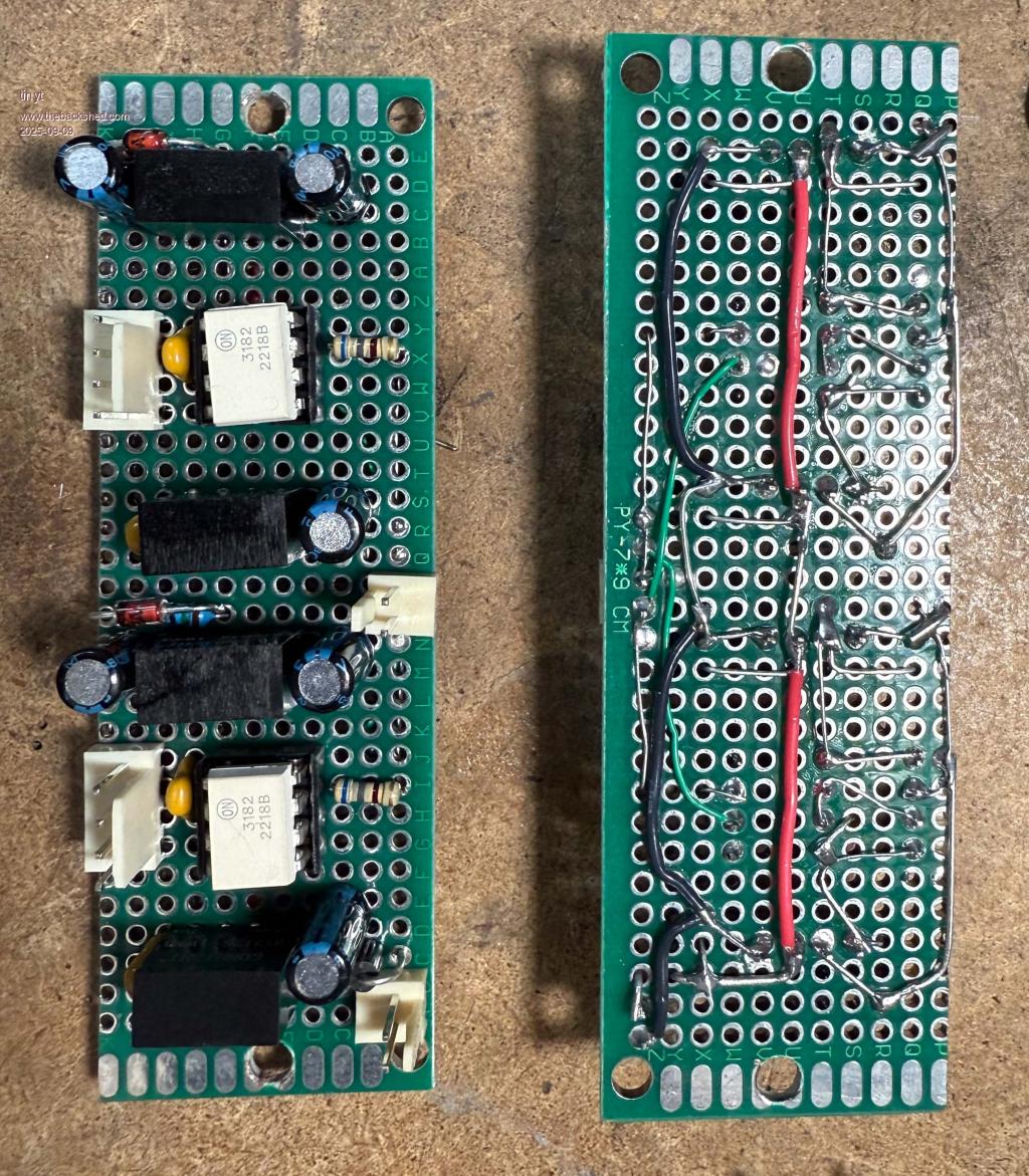To fit the new driver circuits, I have to make 12 copper trace cuts, solder 2 jumpers, and solder a total of 22 wires for the connector harnesses.