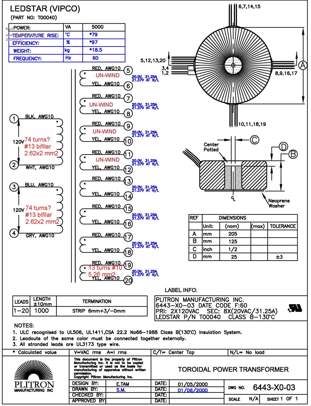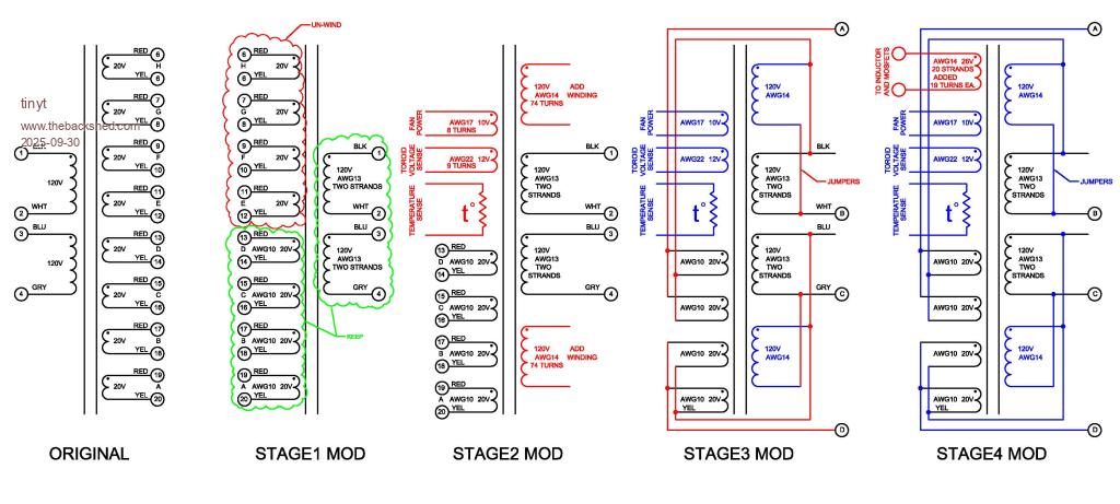 For reference here is the data sheet of the original toroid transformer with my notes in red.