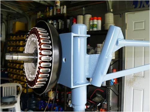 I know it's not the prettiest looken thing but hell who's going to see it close up when she finds her new home LOL. Already started the tail pivot. Woke up last Sunday to the sound of wind rustling the tress around, I couldn't stand it any longer so I set out to make my first electron. Made up a quick tail, installed the stator' called out my women and pulled up a couple of chairs. You should have seen us sitting there waiting for the voltage meter to display some numbers I think the neighbors where thinking (Dam I think those two are losing it). Well we did see voltage and better yet we got to see the CF bulb lite up. May not seem like much to some of you guys but to us it was a special day.