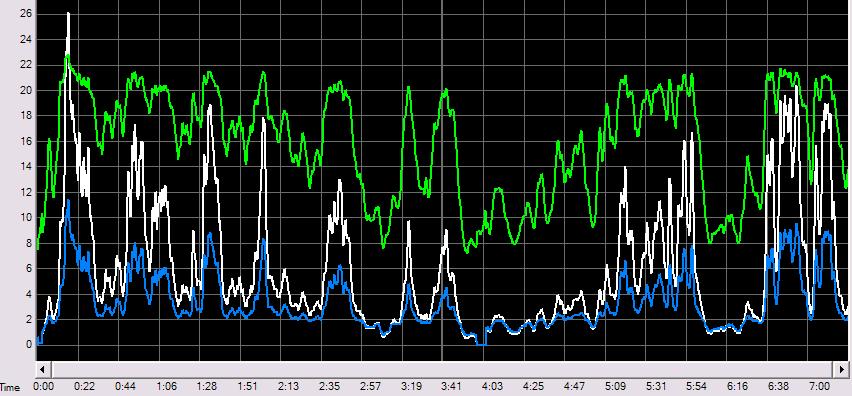 Hi Gizmo, I have answered my own question, re images. I have just included a pic of my mill. Not too much happening on this day. the next photo is output from the mill. voltage and amps with power included. 10 readings per second recording. about 7 mins in total. This is a typical average day output at my site Amps in blue, volts in green and power/10 in white. This is how my MPPT loads my mill. You will notice how the voltage and current vary with time. The mill rpm follows the windspeed. The electronics responds very rapidly to the changing power, increasing or decreasing. I have compared the windspeed log from my weather station and the gusts follow a linear up and down in windspeed, while the power output follows the cubic relationship. This is what you would expect from a true MPPT. The F&P mill with MPPT will respond slightly differently to my mill with a MPPT. Warpspeed uses the feed forward expression. I would call the control process I use as direct control. The generator voltage directly controls the loading of my mill using a variable current limiting process. There is no feedback control, negative, or positive. The sensing element is the voltage controlled shunt in the battery negative. No hall effects used, and all DC coupled to the modulator summing junction. This approach was my electronic conclusion to a voltage controlled relay arrangement that bank switched my 4 rectified and filtered phases out from 4s to 2s x 2p to 4p as the windspeed increased. the click clack of relays up on the tower was frustrating and power wasting, with no semiconductor option. I hope the discussion continues, so that the MPPT with F&P can be concluded. cheers, Gordon. become more energy aware |
