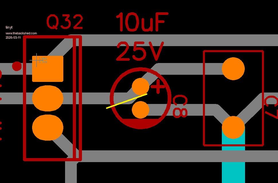 So I am thinking cut the track from the TIP 41C to the cap and make the connection under the board using the cap legs to make the new circuit path. Edited 2026-03-11 12:25 by Bryan1