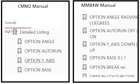 Hi Doug, There is still more information in the bookmarks. The illustration below shows the difference when compared to the CMM2 manual. ![]() I suppose it's not a big deal but I think it looks better as Geoff does it and the items are easier to find. Bill Keep safe. Live long and prosper. |