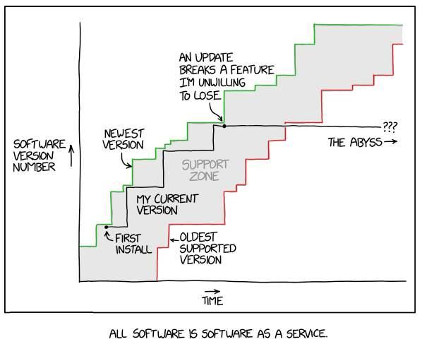 :) (xkcd? If not it should be!) Anyone who is *depending* on a RC release is doing this wrong. RC (Release Candidate) is a beta that is more likely to be released without too many more changes, it's not a stable release yet and things may change. :) If you want a release that isn't going to break your program then use the newest full release, even if the future bells and whistles aren't in it... Mick Zilog Inside! nascom.info for Nascom & Gemini Preliminary MMBasic docs & my PCB designs |