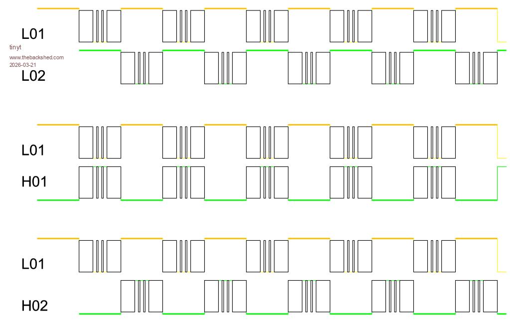 You have to make sure waveform time and voltage relationships for the signals are correct. Here is a sketch for reference, note the position of the wide lines with respect to their 0 volt.