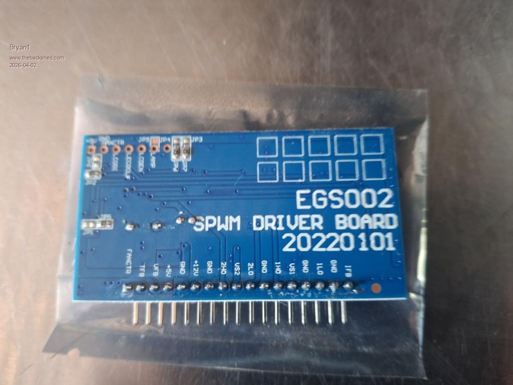 I do have a couple of those boards here I bought a while ago so this morning I will have a look and see if they are actually EGS002 boards. So if any mods are needed I can do it to one of the boards I have here so it's already to run to run when the inverter arrives. Edited 2026-04-02 07:15 by Bryan1 |