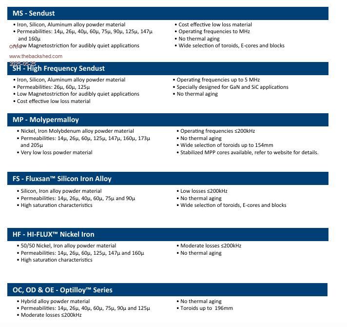 Looks good, couldn't find any reference to that part number either...not that surprised that its not listed, quite a few of them don't seem to be listed, I have 2 large cores with unknown numbers. Anyway it appears to have removed/dampened the Buzz sound, My old Mad inverter has a buzz sound when it starts the induction motor on the saw bench, start surge of about 8Kw, sounds a little like hitting it with a hammer as it still uses the old silicon steel U cores. ![]() Cheers Aaron Off The Grid |