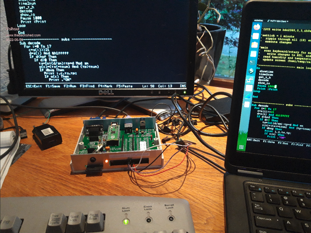 Finally the box arrived and the bare pico board is mounted. My dev. setup... ![]() close up (SSTV interface removed from shadow pico socket) ![]() The linear regulator seems reverse, but I only had a LM1086-3V3 in my toolbox. I did separate the VGA signals from the shadow sockets and the 40pin header to improve video quality. The audio filter is an idea from MIXTEL90, using inductors, to get better frequency response and 44kHz reduction. This week my RTC will arrive.... Volhout Edited 2022-06-06 06:49 by Volhout PicomiteVGA PETSCII ROBOTS |