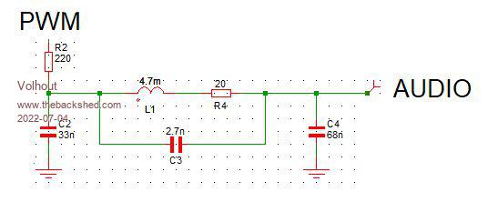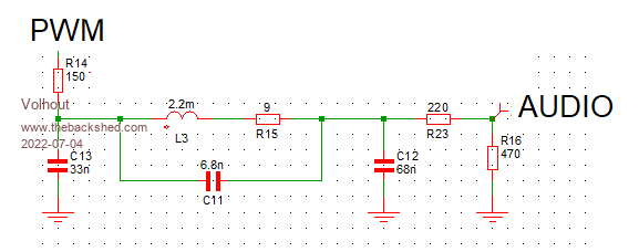 @ Peter, This is the alternative for the inductor based filter. Resistor R22 is only needed to limit the output level to the level similar to the level that your 1.4 board outputs. For headphones it is not needed. Most audio amplifiers may not need it. The transistor is not critical, it can be any PNP, as long as the pinout is right. BC558, BC327 -or- the mirrored pinout 2N3906/2N2907. It's only drawback is 5V. What I like is that it can also be fully SMT. Harm Edited 2022-06-13 19:48 by Volhout PicomiteVGA PETSCII ROBOTS |
