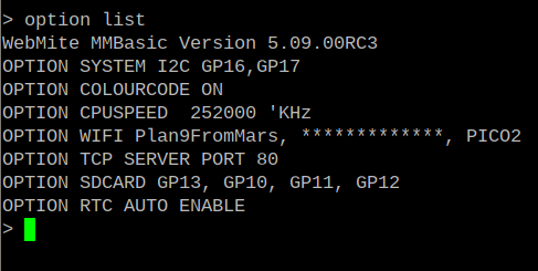 Stanley, Did you type in the options after a blank install? Or did you restore them from a file ? Volhout PicomiteVGA PETSCII ROBOTS |