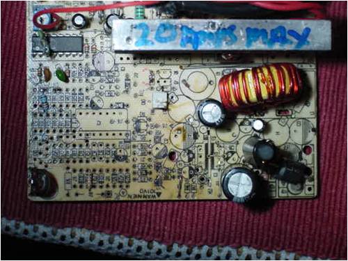 In the mean time, I've opened the other AT box for surgery. This one has the "IR3M02" ,sharp equivalent of the tl494. It also has the second error amp disabled, so it seems like a good candinate for the sensing wire current limit-mod. This one is quite odd also: