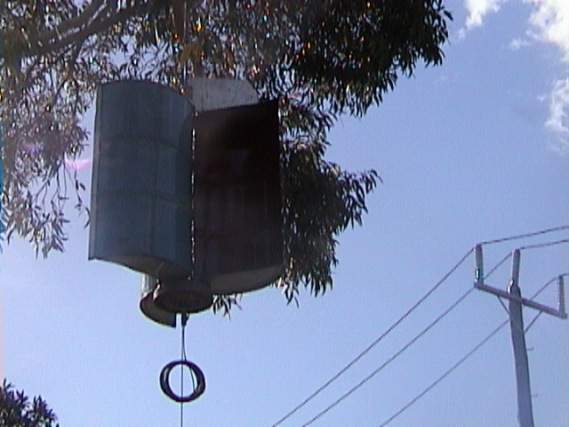 Hello Bart,yes today was THE day.Out of bed at 6am and in the garage for one more final modification(I wish)6 hours later and hurray the eagle has landed.Up up and away my beautifull windmill.Looks like a UFO in drag(pun intended).Not a lot of wind but glorious to watch.I am contemplating another on top. But before it drops out of the tree and becomes my disarster I need to fit a fall arrestor.So off to the auto wreckers for a seat belt tensioner.As for the design it's a combination of 5 years of model testing and everything I could glean off the net.And then adding it all together.Is it efficent only time will tell.Yours is massive at 3 meters mine is only 1 meter dia.But it's all good fun.I hope to try the counter rotating at some stage also.From the sounds of silence VAWT if I can figure out how to upload a video I'll post that soon.Got to get back to my forbidden fruit(Belgian beer) and pat myself on the back yet again.What a day.And it even looks like it's grid connected. Anthony