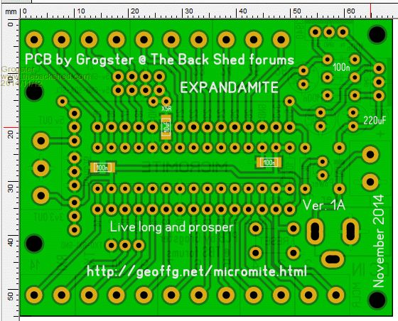 Hi Grogster Your measurements puzzle me, surely the pin headers, ic sockets etc are on a 0.1 inch or 2.5mm spacing. All components were once apon a time until we were all metricated were made to a standard 0.1 inch pitch and still are. It is a good looking board best you call it quits as it will be never ending. Cliff Cliff |
