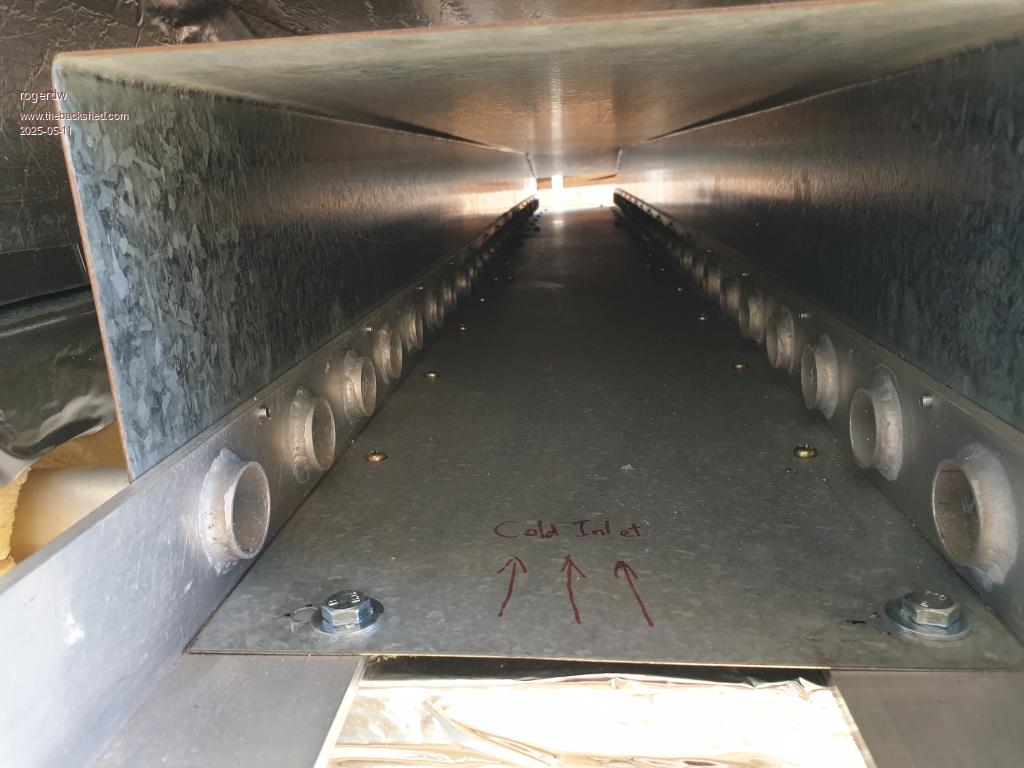 You can see I have some foilboard insulation on the base and have also added that to the inside of the outer manifold to keep as much of the heat as I can. There are two layers, one 20mm and one 25mm thick  ...  which keeps the inner manifold at the right height and makes the tubes exit in the centre of their holes.