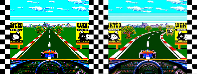 As I described in another thread , performance was significantly improved by replacing the BOX commands with BLIT RESIZE This should make it perfectly possible to show up road signs and objects at the side of the road without losing speed. I’ve drawn a little something to illustrate this. ![]() I've already designed a few important RGB121 signs instead of traditional billboards ![]() At the moment, I’m trying to figure out how to make signs that are closer move faster than those that are further away. Well, I’ve got time over the Easter holidays to find that out Cheers Martin Edited 2026-04-03 19:03 by Martin H. 'no comment |