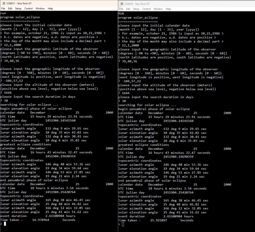 :-) I'm sort of surprised that the Solar eclipse calculations aren't a lot faster, as I assume there would be a lot of floating point maths, maybe not. But looking great already. Edited 2024-08-14 05:24 by Bleep |