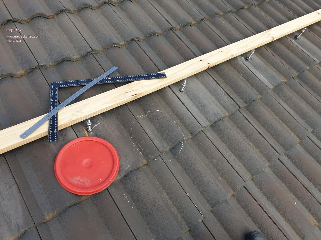 Here I'm transferring the markings out onto the roof  ...  not just relying on using my tape measure  ...  not that confident.