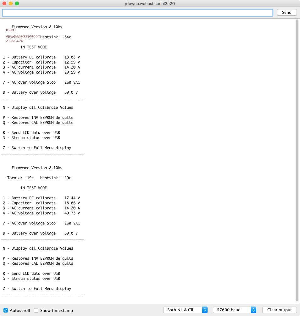 So glad to see it going, Ideally, we should get the fuses set and the boot loader removed. However you should be able to test the boards and it will run. Just have a look at the help file for how to use the Menu. Basically, you don't press Enter at all, enter key is only used to accept a voltage or current value typed in if the Menu asks you to do that. You also need Local Echo on in the terminal application to see the keys you press, the Nano Menu does not ECHO back your key strokes to the Terminal program. IE without having local Echo on, you wont see anything you enter - it will look like the Nano is not responding to you ![]() NANO:Inverter V 8.2ks - Linux AvrDude GUI script V4.1 |
