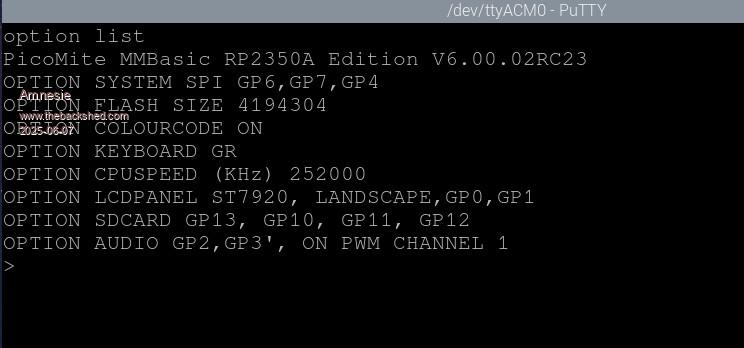 Forum Index : Microcontroller and PC projects : PicoMite V6.00.02 release candidates - all versions