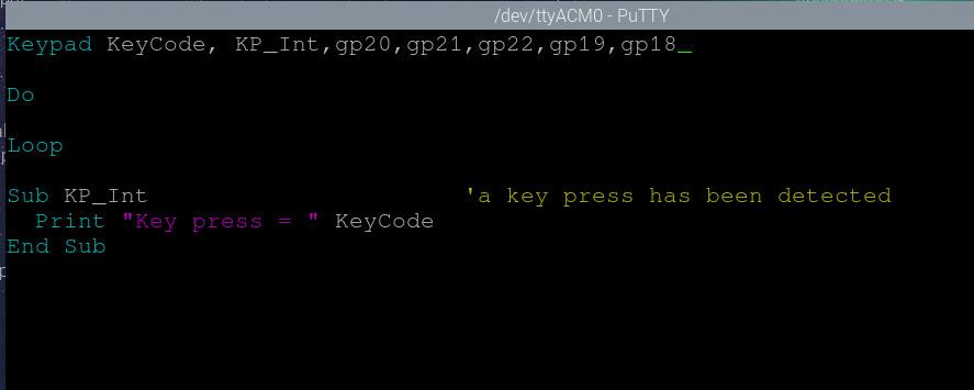 If you have two unassigned pins then just include these in the keypad command and your PCB will work fine. Otherwise just run the scan in a timed Basic interrupt Edited 2025-06-07 01:36 by matherp |