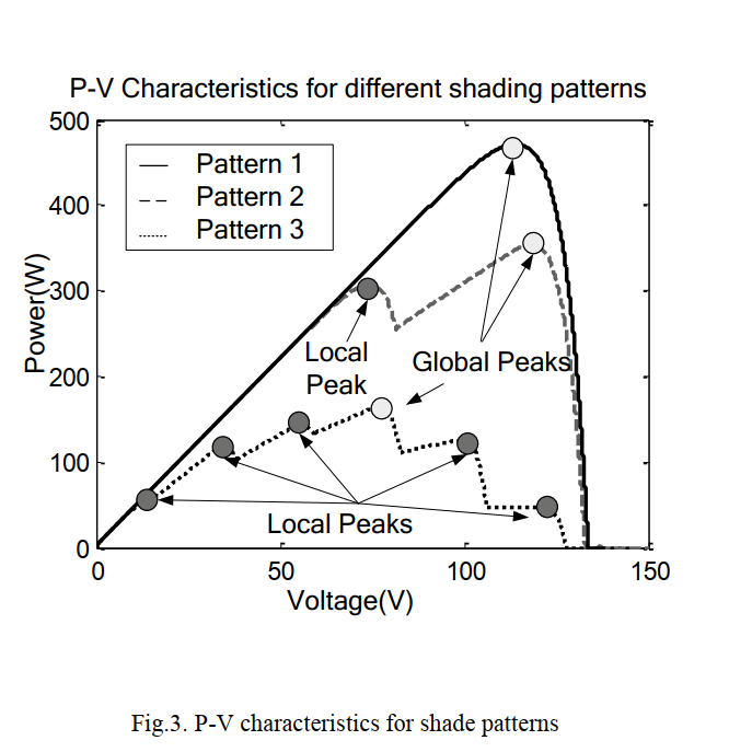 nickskethisniks, I have built 2 boards, with variations on MOSFET types. board #1 has a 100uF and a Tantalum of unknown value positioned side by side under the TLP205 socket. board #2 has a 10uF 16V Tantalum and 100u cap. I used the 12V-12V isolated single supply part so the 16V Tant cap is OK. I notice your schematic uses a 12V-15V bipolar output and uses -15 and +15 outputs to supply the TLP250. I think that is a bit high and wanted to try 12V for gate drive and see what happens. As it happens board #1 has less ringing than #2. Last night I finally got MPPT working on a board (and not just simulated in software) It works fine. I found that from a cold start, MPPT does not work at all for me, but every minute the code does as scan from 1/16th power to 15/16ths power and records the pwm that produces maximum power. Then I start MPPT from that point and it works flawlessly. The reason I will incorporate the periodic max. power scan is due to shading of parts of an array can cause multiple power peaks. My MPPT code will not find always the maximum peak among a few, it will just track to the top of the first one it sees. the paper from here shows some potential situations. ![]() and here are the P-V curves for the above 3 examples ![]() wronger than a phone book full of wrong phone numbers |
