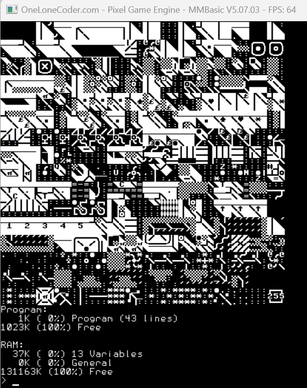 b) Whether BLIT COMPRESSED with transparency is possible - this may be MMBasic programmer error, I haven't had a chance to pull things together to try it for myself: https://www.thebackshed.com/forum/ViewTopic.php?FID=16&TID=16235&LastEntry=Y#210011#209990