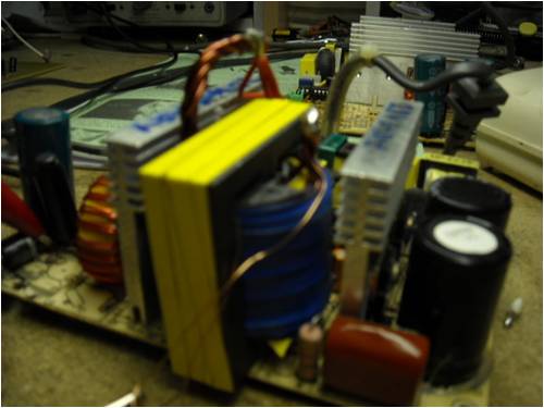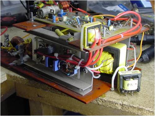 And just for something interesting here is a 1kw unit with no electro's in good old fashioned push pull... and a big transformer I wound for it for testing...: