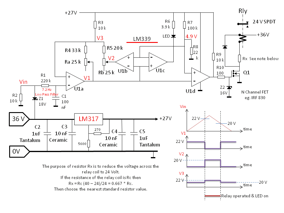 Sparkey, What voltages do you want your 36 Volt system to trigger? Glenn said above that they depend on the type of battery, etc. So I'll await your advice. Len |
